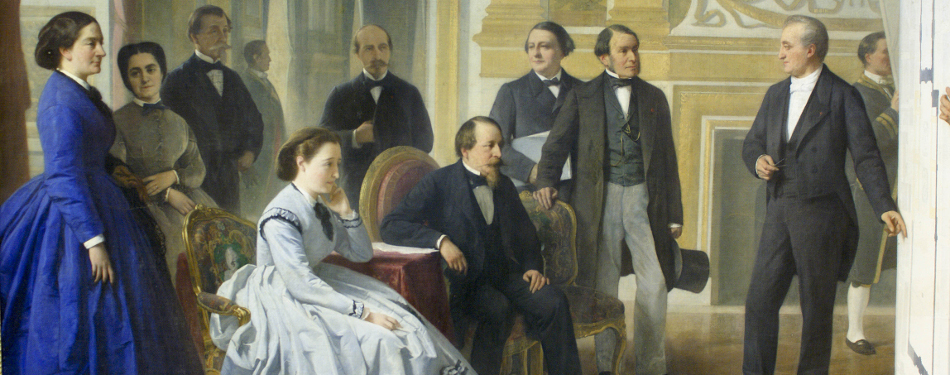 Napoléon III et son épouse, l'impératrice Eugénie, se faisant présenter les projets d'aménagements du Louvre.